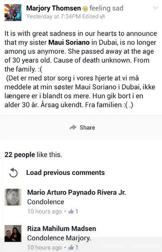FB Scoop: Former Adamson Lady Falcon skipper Pau Soriano's relative dies at the age of 30 in Dubai. The cause of the death is still uncertain. Condolence Miss Pau!